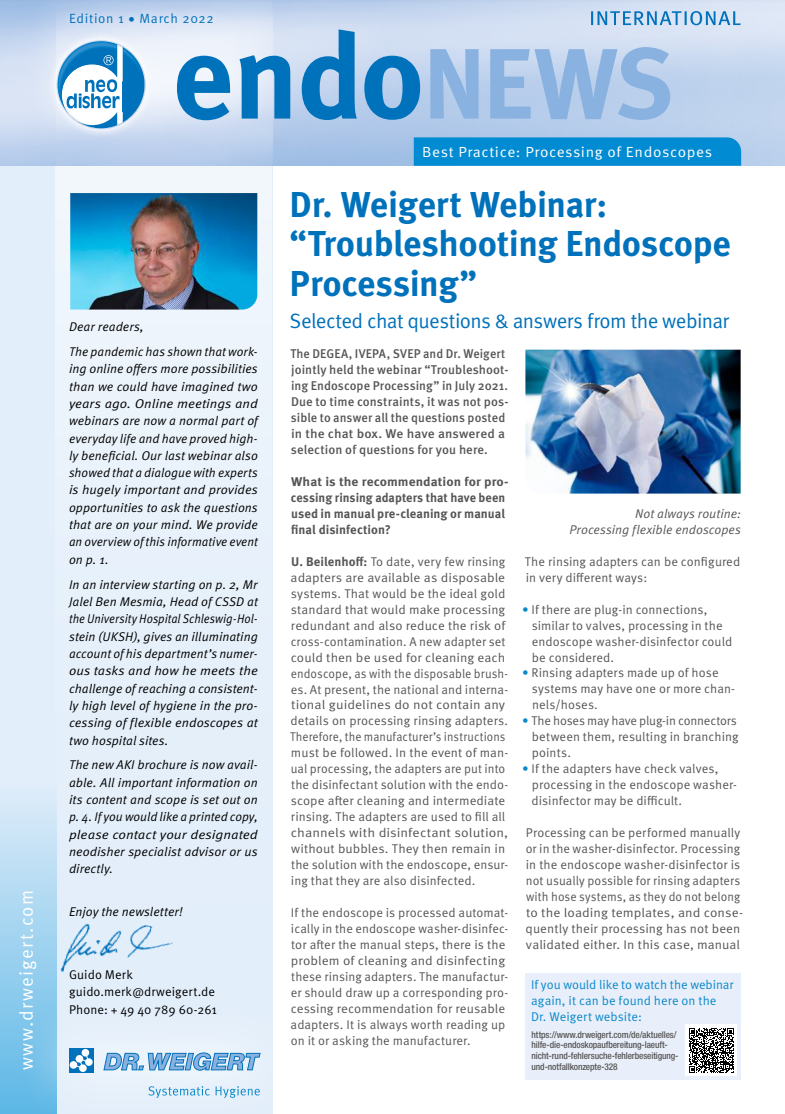 The online seminar of the General Society of Endoscopy Nurses and Associates (DEGEA) held on 14 April focused exclusively on the water quality used to…