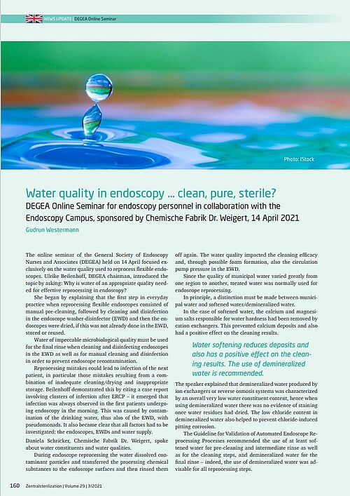 The online seminar of the General Society of Endoscopy Nurses and Associates (DEGEA) held on 14 April focused exclusively on the water quality used to…