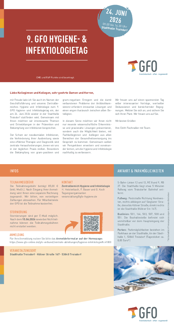 9. GFO Hygiene- und Infektiologietag am 24. Juni 2026 in der Stadthalle Troisdorf.