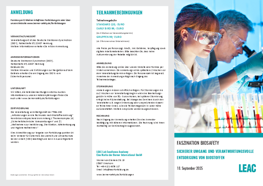 Die Veranstaltung wendet sich an Laborant:innen, Laborplaner:innen und -leiter:innen sowie Sicherheitsbeauftragte und Mitarbeiter:innen aus…