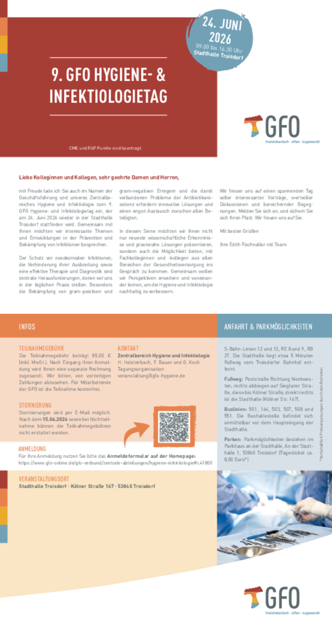Der Schutz vor nosokomialen Infektionen, die Verhinderung ihrer Ausbreitung sowie eine effektive Therapie und Diagnostik sind zentrale Herausforderungen, denen wir uns in der täglichen Praxis stellen. Besonders die Bekämpfung von gram-positiven und gram-negativen Erregern und die damit verbundenen Probleme der Antibiotikaresistenz erfordern innovative Lösungen und einen engen Austausch zwischen allen Beteiligten.