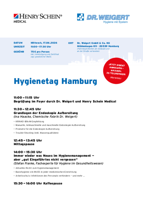11.00 – 11.15 Uhr: Begrüßung im Foyer von Dr. Weigert und Henry Schein Medical